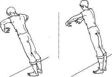 Не отрывая ладоней вытянутых рук от стены (локти прямые), отойдите назад на длину вашей ступни. В этом положении ваше тело слегка наклонено к стене и опирается на вытянутые руки. Затем приблизьте свое лицо к стене, согнув руки в локтях, чтобы кончик носа едва касался стены в середине интервала между пальцами рук (ни в коем случае не упирайтесь носом в стену — последствия могут быть весьма плачевными). Теперь ваше тело наклонено к стене еще больше и опирается на согнутые в локтях руки. Это — исходное положение.