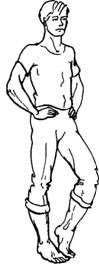Вторую «тридцатку» сделайте с поднятием вверх правого колена, т.е. слегка приседайте на левой ноге, повернув левую ступню носком внутрь, а правую ногу в это время согните в колене и поднимите вверх, слегка повернув при этом ступню носком внутрь (аналогично ступне левой ноги). После этого возвращайтесь в исходное положение.
