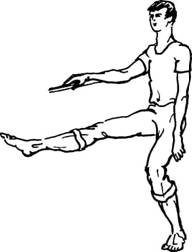 Упражнение «Взлет вперед» можно выполнять одновременно с упражнением «Передний шаг» (см. основной комплекс упражнений). Такое комплексное упражнение называется «Взлет вперед с шагами».